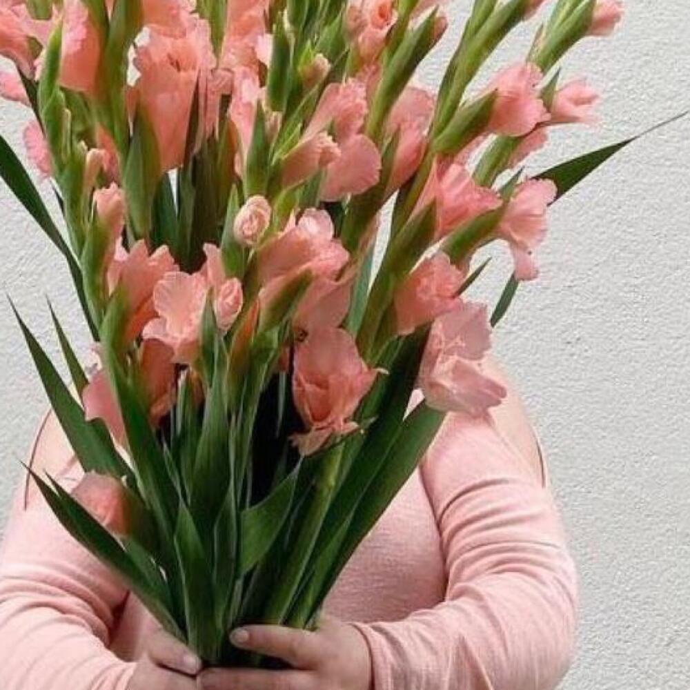 Гладиолус розовый – 11 шт.Лента атласная – 2 шт.Открыточка с вашими пожеланиями – 1 шт.хорошее настроение – 100 шт.инструкция по уходу за цветами – 1 шт.коробка переноска – 1 шт.Кризал – 1 шт.