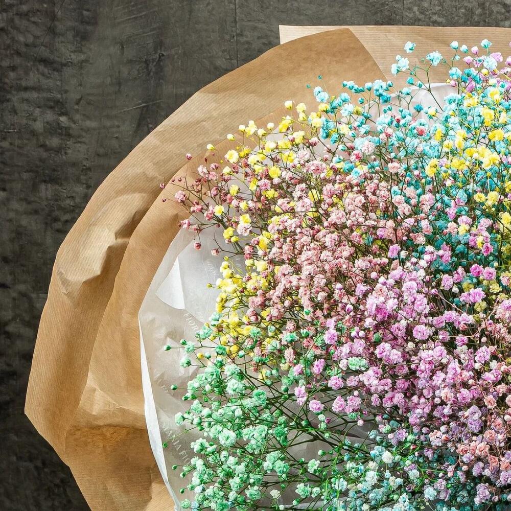Букет из радужной гипсофиллы в крафте