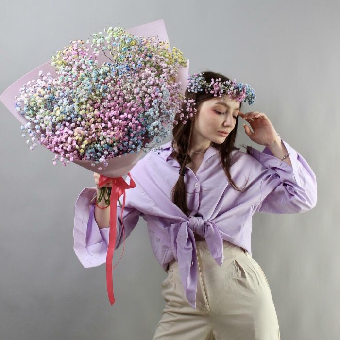 Букет из радужной гипсофилы