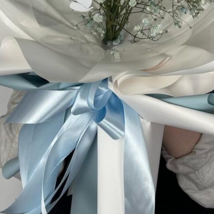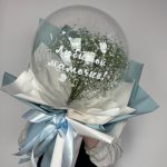 шар бабл – 1 шт.Гипсофила – 3 шт.наклейка фирменная – 1 шт.покнка матовая – 6 шт.Лента атласная – 4 шт.