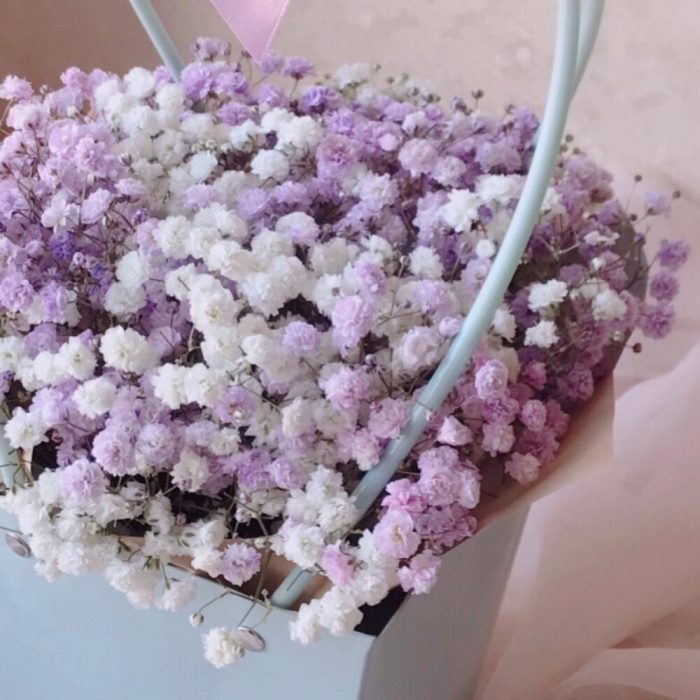 Очаровательная композиция из изысканных свежих цветов.Наполнена множеством соцветий белой и фиолетовой гипсофилы. Собрана в стильной сумочке.Композиция из гипсофилы – необычный подарок, который удивит своей невероятной стойкостью, при правильном и простом уходе.❤️ Ставить композицию в прохладном месте, избегая отопительных приборов и прямых солнечных лучей. ❤️ Подливать немного воды в серединку.Гипсофила не вянет, а становится сухоцветом, сохраняя свой вид. Поэтому композиция продолжит радовать ещё очень долго!Почему выбирают нас? – Работаем на качество. – Бережно упакуем в транспортировочную пленку, чтобы защитить во время доставки от любых погодных условий. – Приложим инструкцию, как правильно ухаживать за цветамиСохраняйте товар в подборках, чтобы не потерять