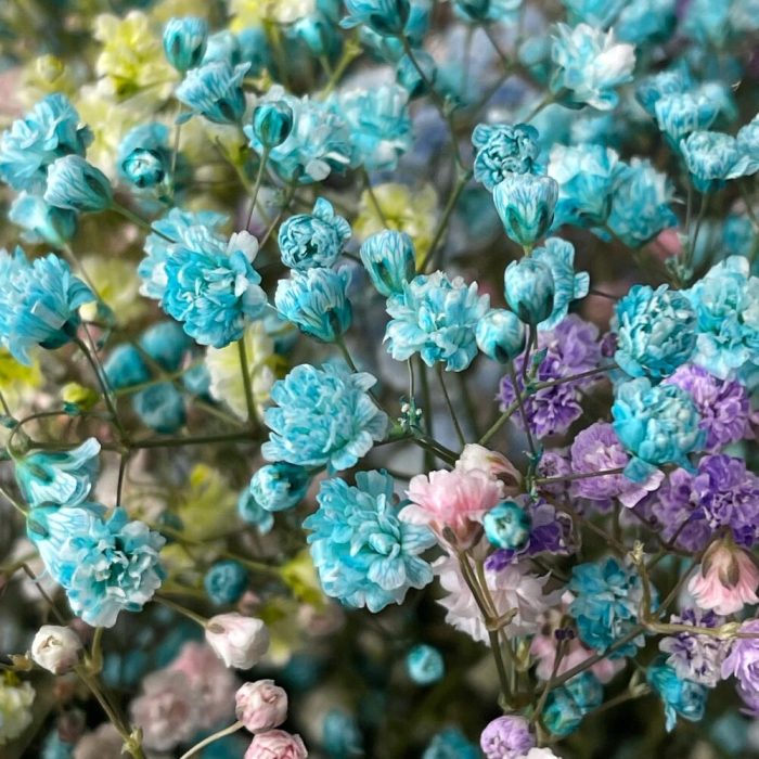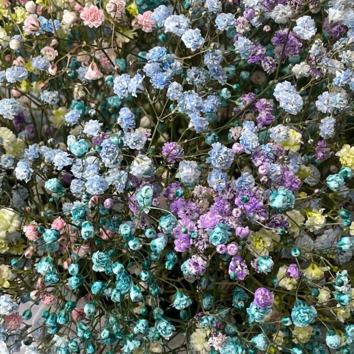 Лента – 2 шт.Тишью – 1 шт.Коробка шляпная – 1 шт.Оазис флористический – 1 шт.Гипсофила крашеная – 9 шт.
