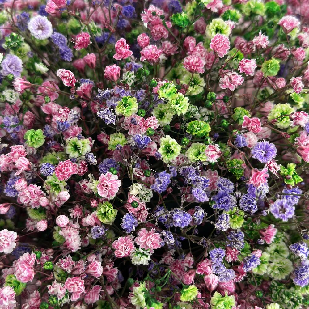 «Лавандовое созвездие» Букет из розы, гвоздики, статица и хлопка