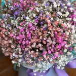 Лента атласная – 1 шт. Шляпная коробка – 1 шт. Оазис флористический – 1 шт. гипсофила радужная – 7 шт.