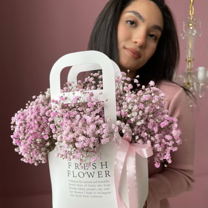 Стойкая гипсофила в крафтовом пакете – отличный подарок в день рождения!