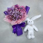 Подарочный набор – Букетик гипсофилы (размеры: 25 см высота, 20 см ширина) с мягкой игрушкой Lapkin. Доставляется в крафтовом пакете (высота 25 см, ширина 22 см, глубина 12 см).