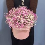 Коробка шляпная – 1 шт.Гипсофила розовая – 6 шт.
