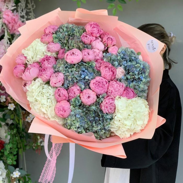 Гвоздики, Гортензии, Кустовые розы, Розы