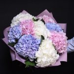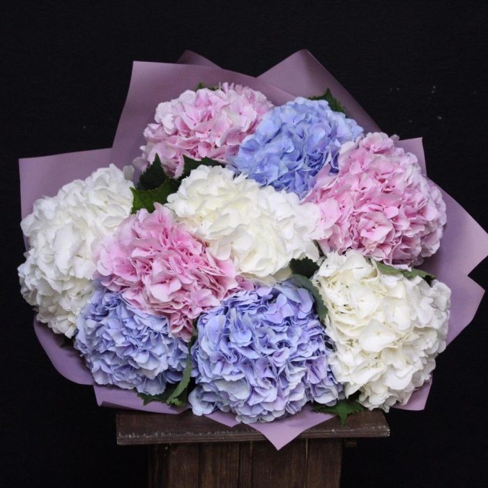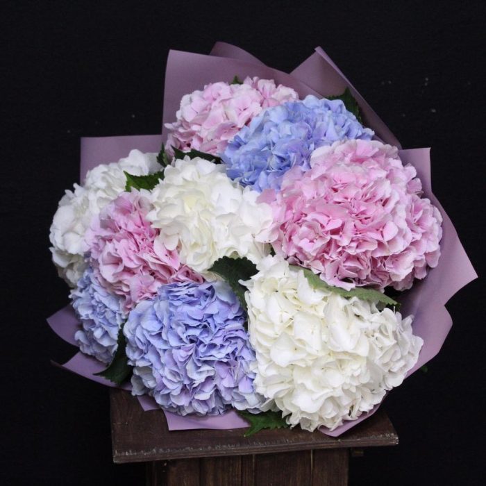 Гортензия – 9 шт.Пленка дизайнерская – 3 шт.Лента атласная – 2 шт.