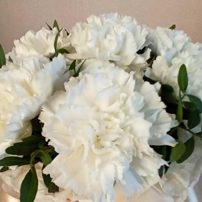 Белые диантусы в дизайнерском оформлении