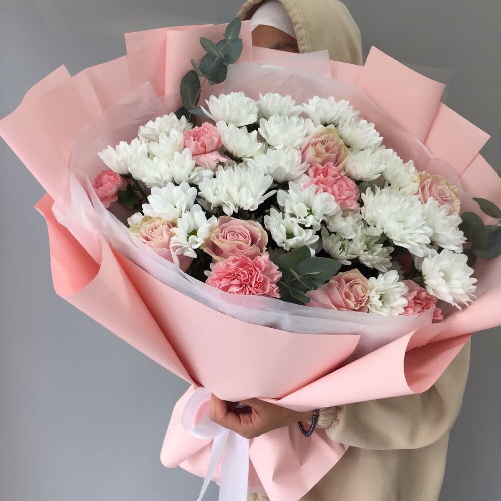 Гвоздики, Кустовые розы, Лизиантусы, Пионовидные розы, Розы