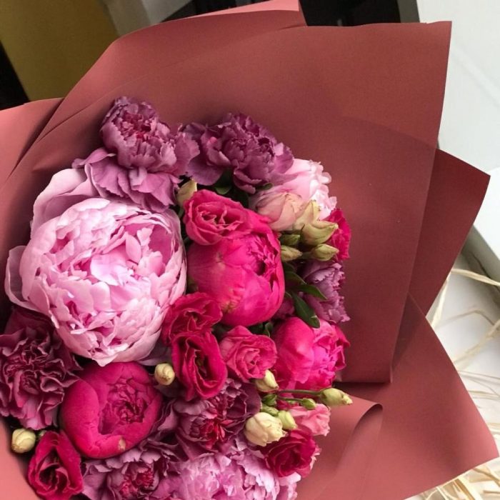 Гвоздики, Кустовые розы, Лизиантусы, Пионовидные розы, Розы