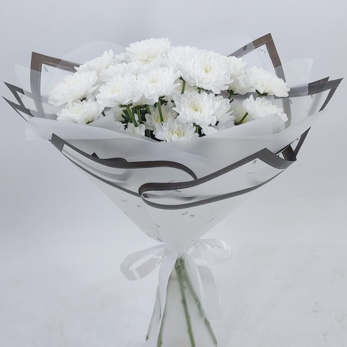 Монобукет махровых белых кустовых хризантем. Для тех, кто любит минимализм, кто ценит стиль и лаконичность Такой букет всегда уместен и подойдёт для любого повода: День Рождения, именины, годовщина свадьбы, рождение ребенка, 8 марта, День Святого Валентина, выпускной … Показать ещёи т.д. Можно вручить маме, сестре, подруге, коллеге, учителю, любимой.