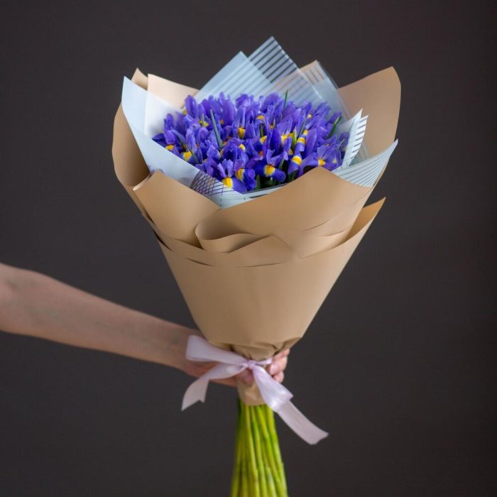 Ирис Blue Magic – 25 шт.Корейская пленка – 1 шт.крафтовая бумага – 1 шт.Атласная лента – 1 шт.