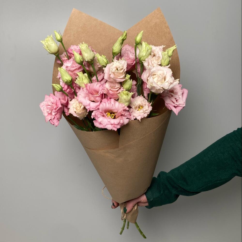 эустома розовая – 3 шт.Крафт бумага – 1 шт.витамины для цветов – 1 шт.