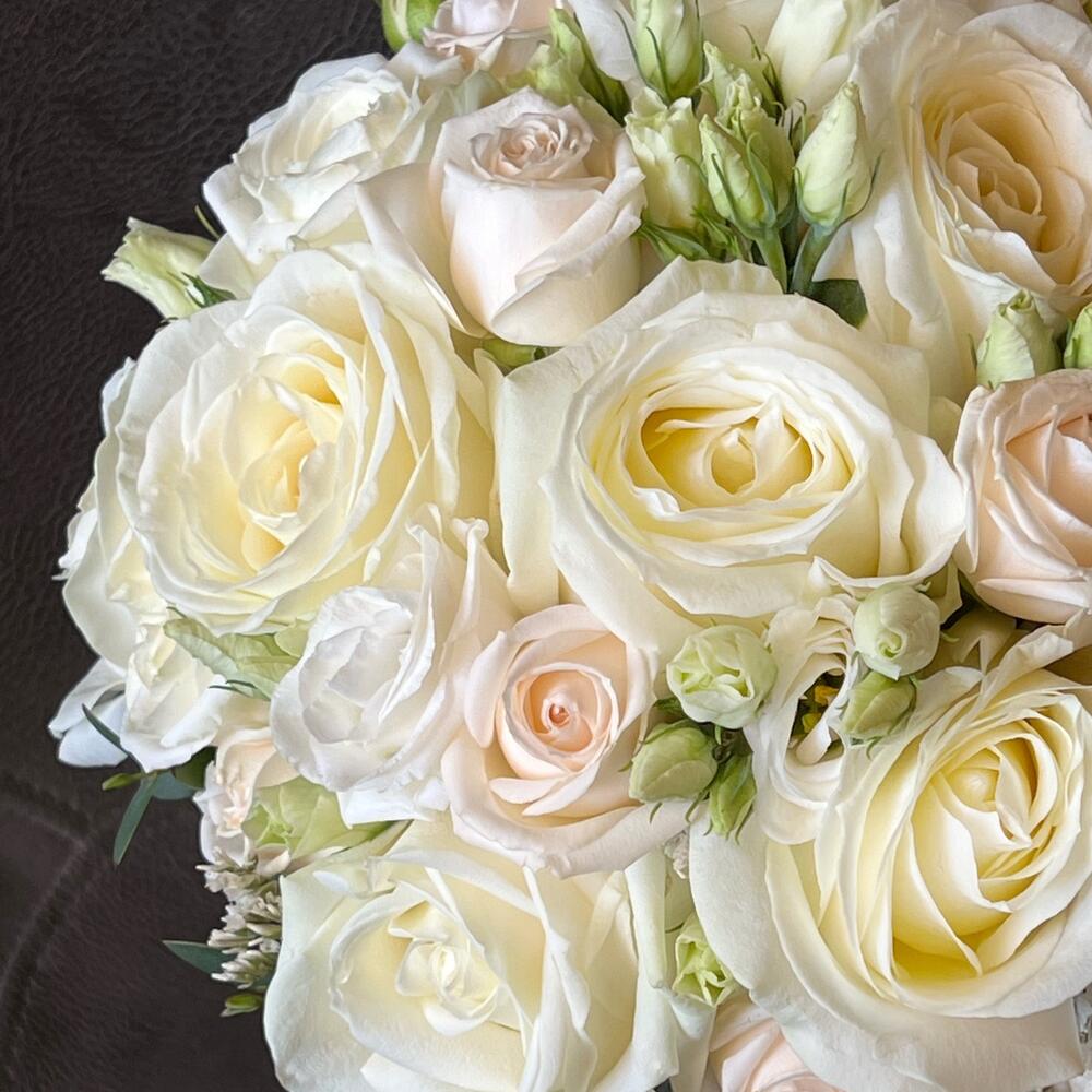 Стильный букет в кремовой гамме в классическом составе. Состав может быть скорректирован с учётом сезонности цветов на дату заказа. Цветовая гамма не меняется , могут быть равнозначные замены.Мы бережно и вовремя доставляем букеты в дату торжества и накануне.