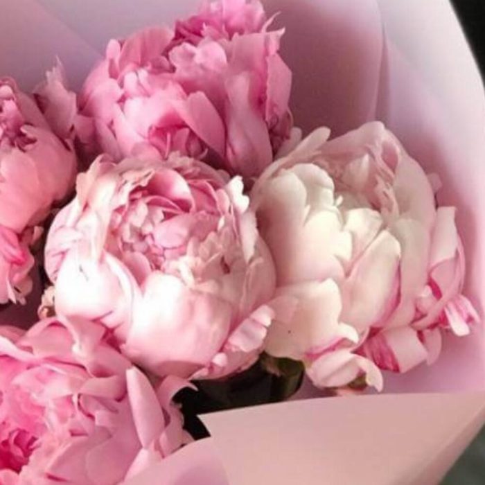 пионы сара бернард – 5 шт.Упаковка дизайнерская – 2 шт.Лента – 1 шт.