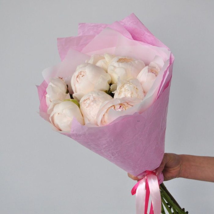 Пион – 15 шт.Лента атласная – 1 шт.Упаковка дизайнерская – 2 шт.