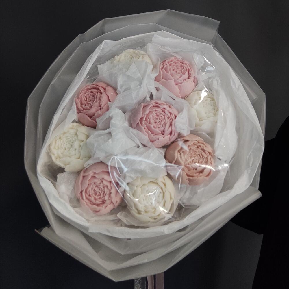 пион из белого бельгийского шоколада – 9 шт.уракрвка дизайнерская – 2 шт.