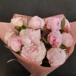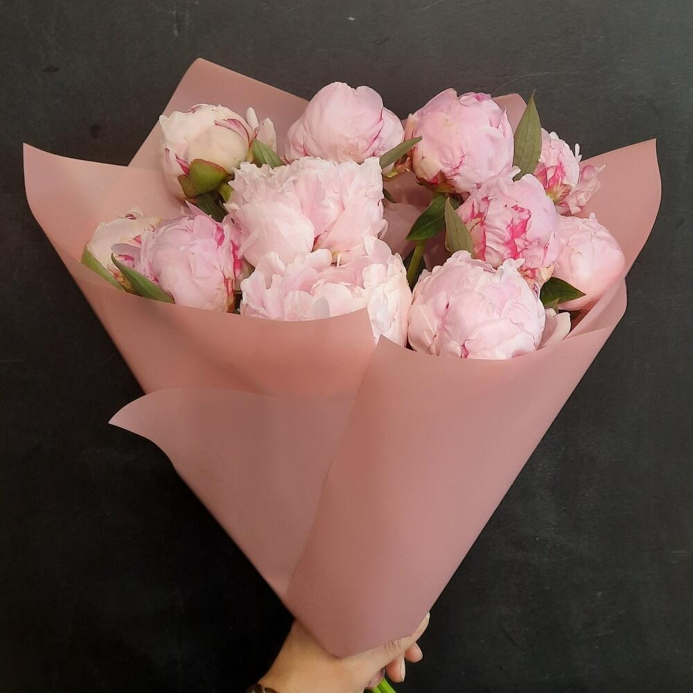 Букет розовых пионов в дизайнерской упаковке 9 шт