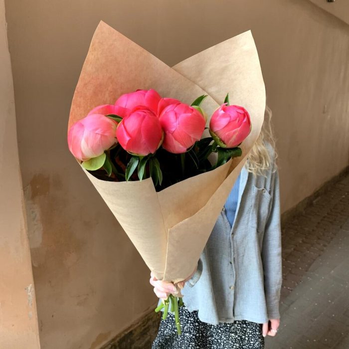 Крафтовая упаковка – 1 шт.пион коралловый Коралл шарм – 5 шт.