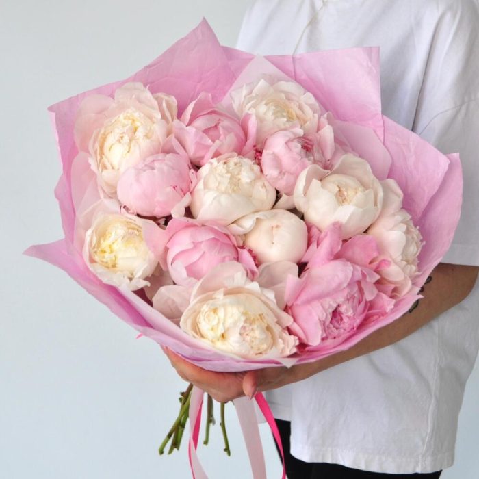 Пион – 15 шт.Лента атласная – 1 шт.Упаковка дизайнерская – 2 шт.