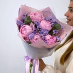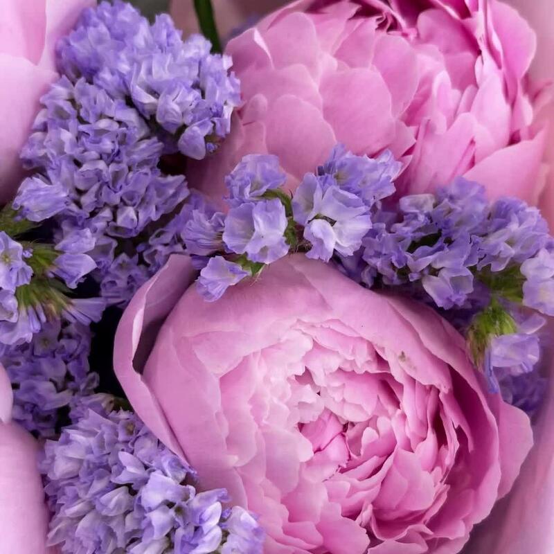 Ароматные розовые пионы Сара Бернар и лавандовая статица в букете, собранном с любовью и нежностью.Обращаем Ваше внимание, что степень раскрытия пионов не зависит от нас. Мы можем гарантировать только свежесть цветов.К каждому букету мы прикладываем:- открытку с Вашими пожеланиями- инструкцию по уходу за букетом- пакетик кризала для продления жизни цветам