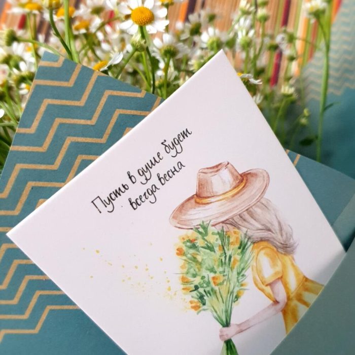 Лента атласная – 2 шт.Ромашка кустовая – 15 шт.Крафт упаковка – 2 шт.Открыточка с вашими пожеланиями – 1 шт.