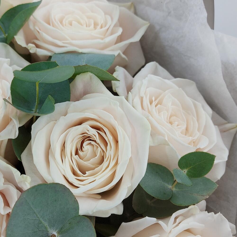 Роза Эквадор Премиум – 21 шт.эвкалипт цинерея пучок – 1 шт.Упаковка дизайнерская – 1 шт.