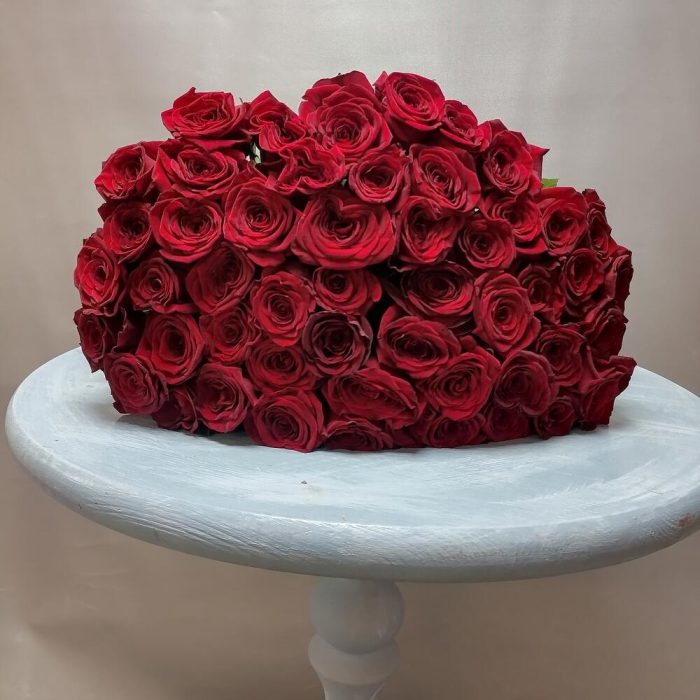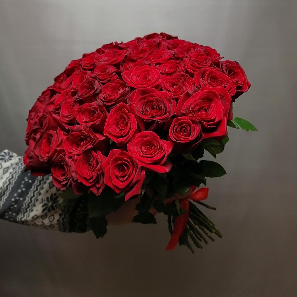 роза ред наймоми – 51 шт.упаковка по желанию – 3 шт.Лента атласная – 1 шт.Открыточка с вашими пожеланиями – 1 шт.