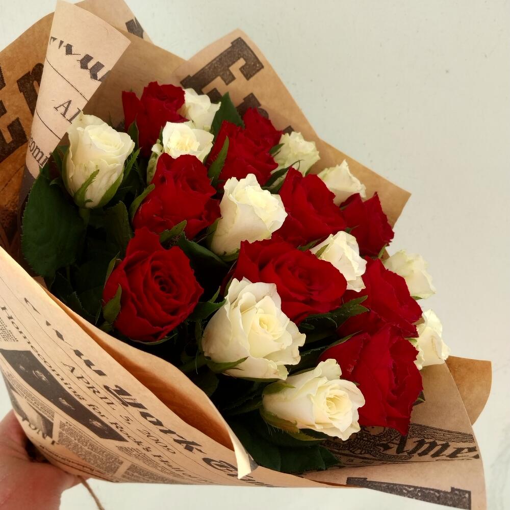 Роза Кенийская – 21 шт.Крафт упаковка – 2 шт.бечевка натуральная – 1 шт.