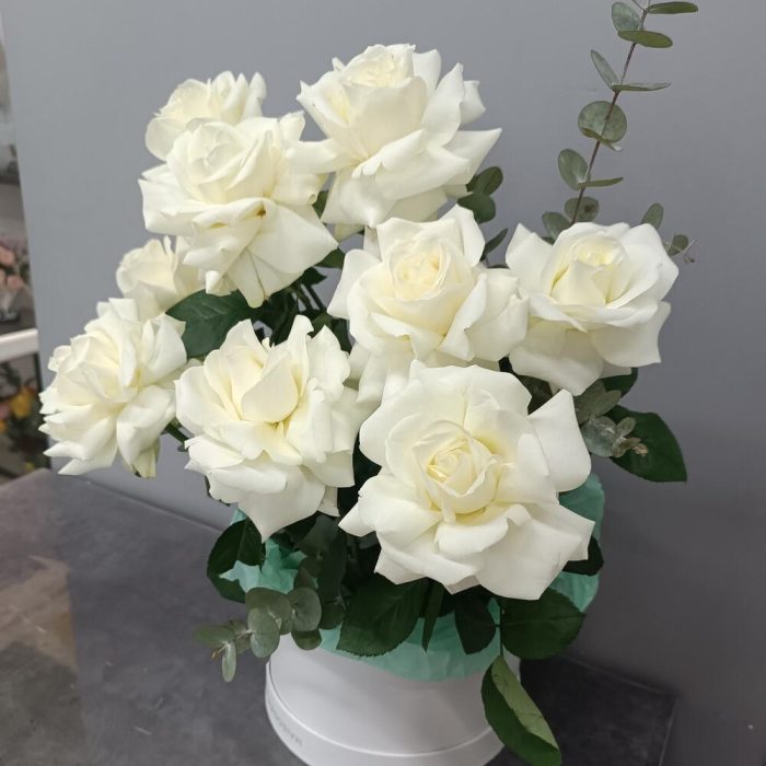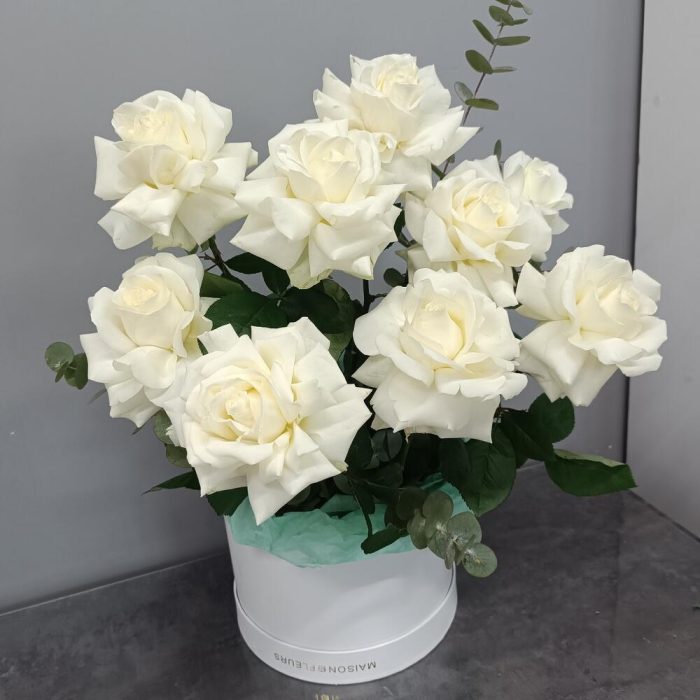“Атлас☁️” – цветочная композиция с зефиром в деревянном ящике