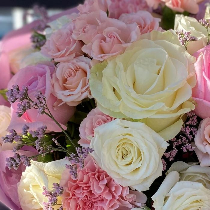 Гвоздики, Кустовые розы, Пионовидные розы, Розы