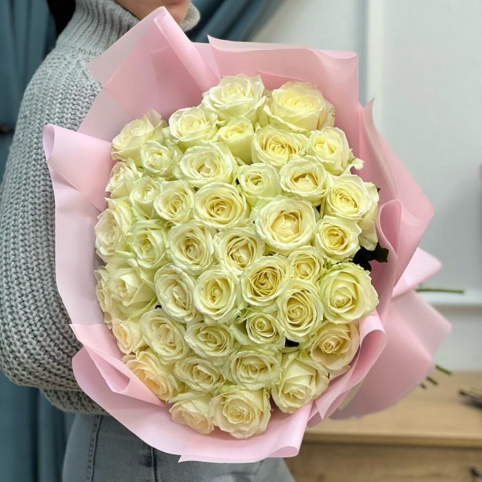 Букет белых роз 51 шт «Сильно влюблён»