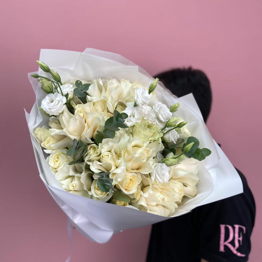 Альстромерии, Гвоздики, Кустовые розы, Лизиантусы, Розы, Хризантемы