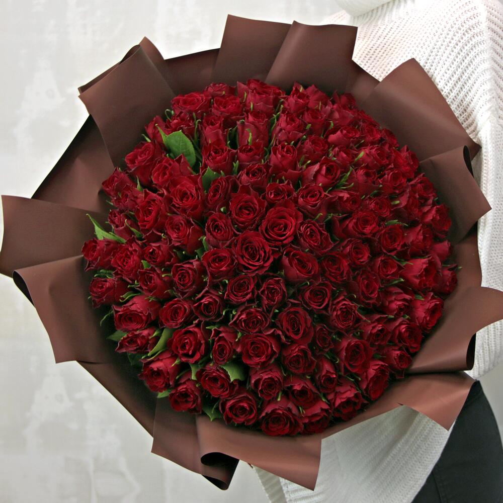 Букет из 101 красной розы 35-40 см (Кения) в стильной упаковке