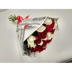 роза красного цвета 60 см – 15 шт.роза белая аваланш 60 см – 10 шт.Упаковка – 1 шт.
