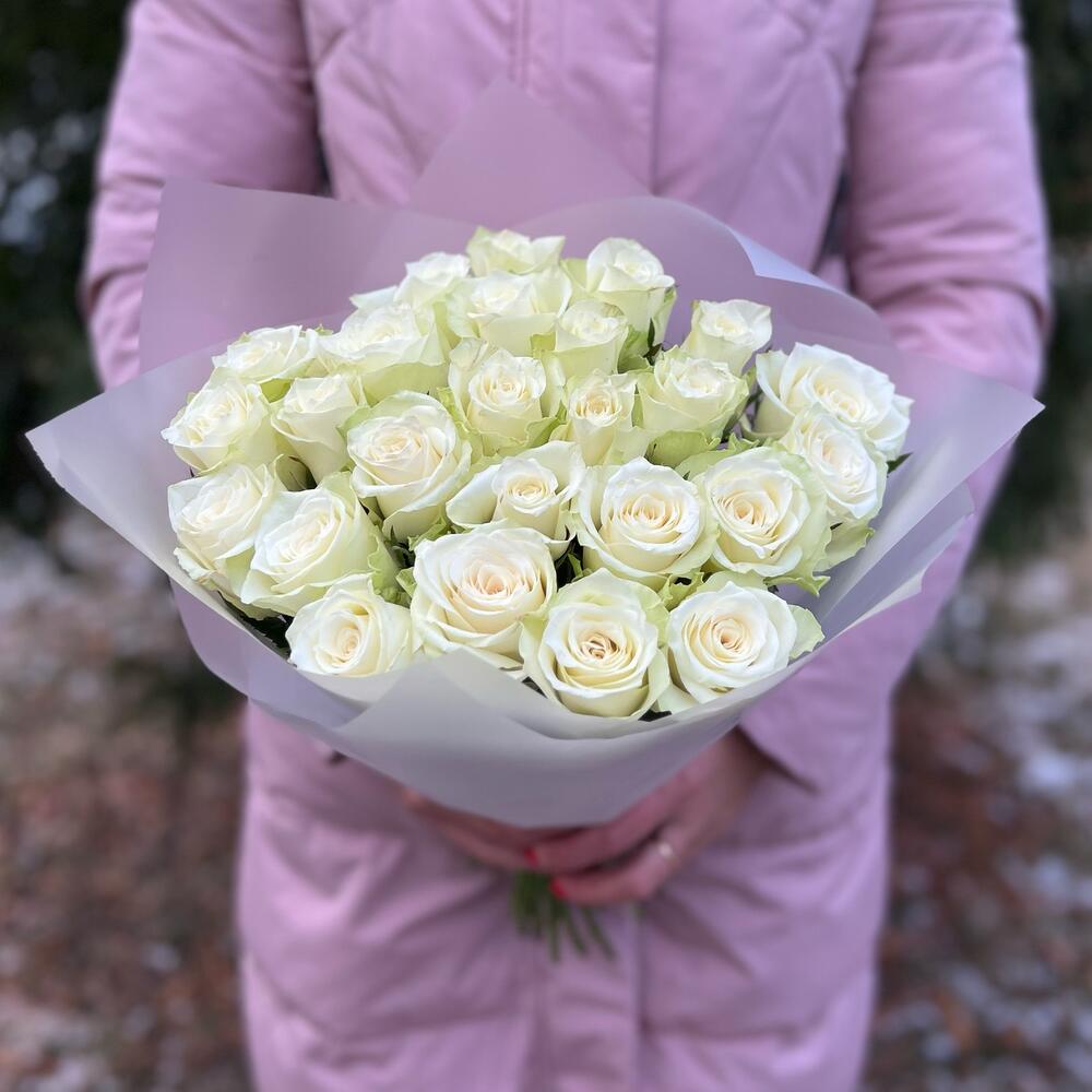 Букет из 25 белых роз 35-40 см (Кения) под ленту