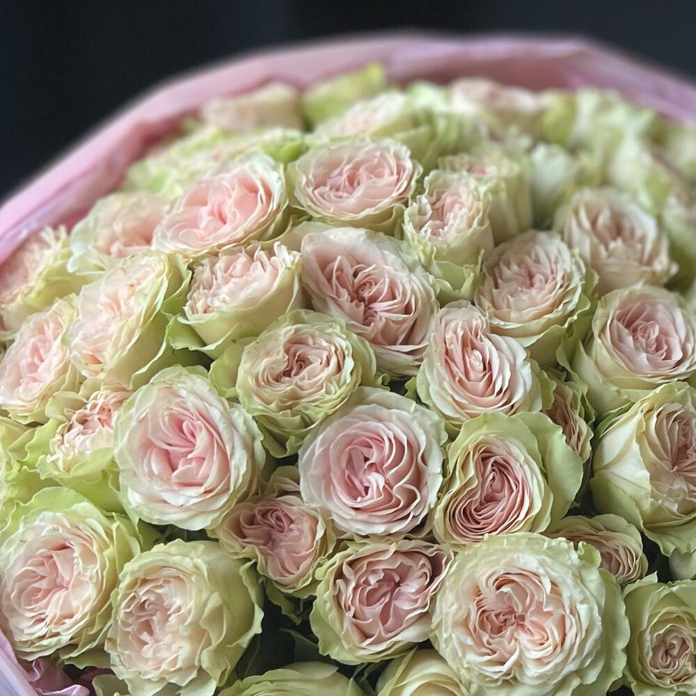 Атласная лента – 1 шт.Кустовая пионовидная роза – 25 шт.декоративная упаковка – 1 шт.