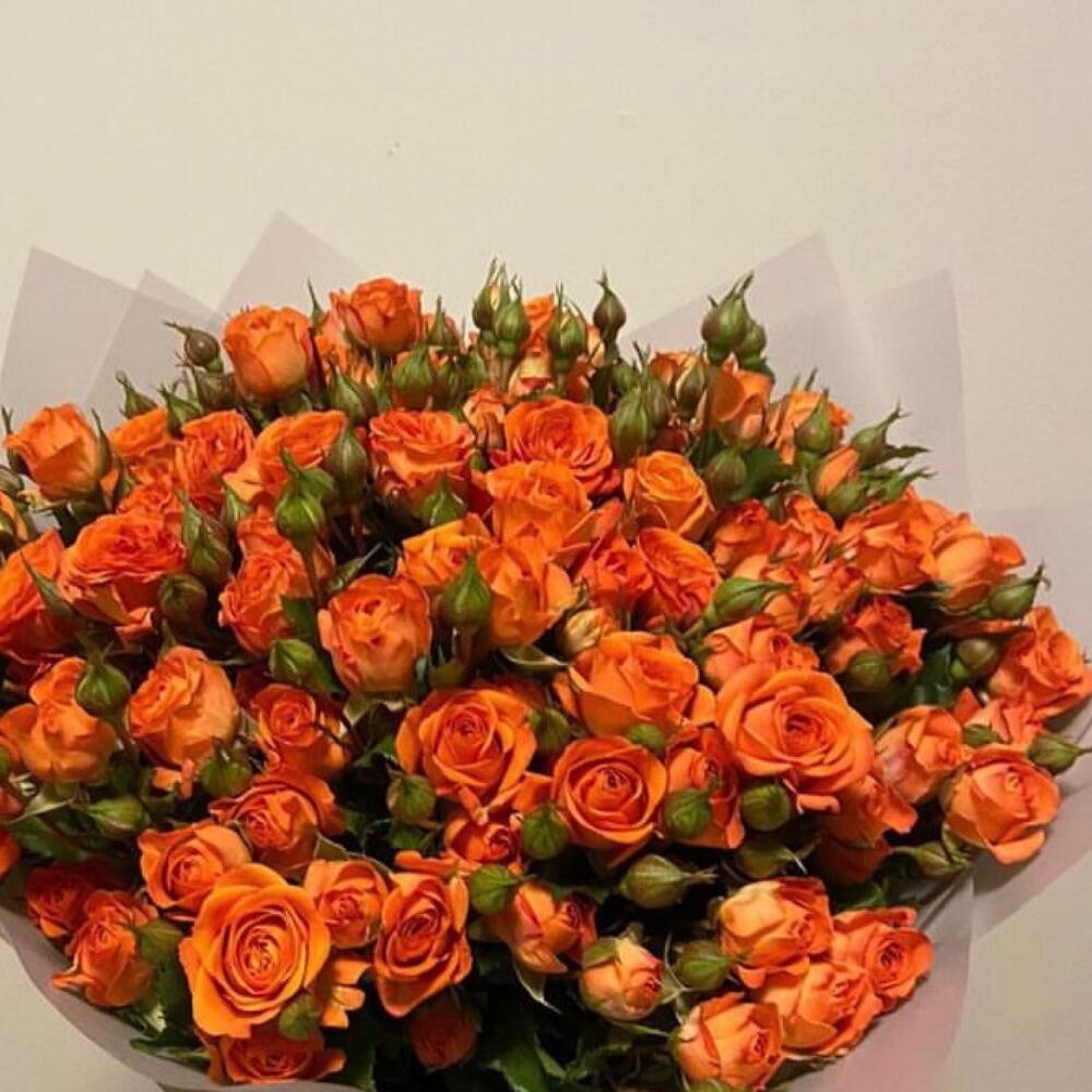 оранжевая кустовая роза – 51 шт.Упаковка дизайнерская – 1 шт.Лента атласная – 2 шт.Открытка – 1 шт.инструкция по уходу за цветами – 1 шт.хорошее настроение – 100 шт.коробка переноска – 1 шт.Кризал – 1 шт.