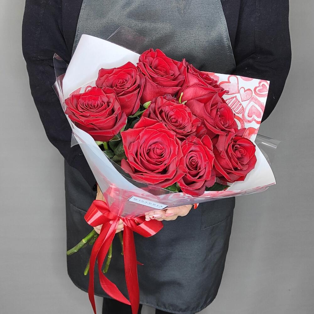 Букет из 9 красных роз в стильной упаковке