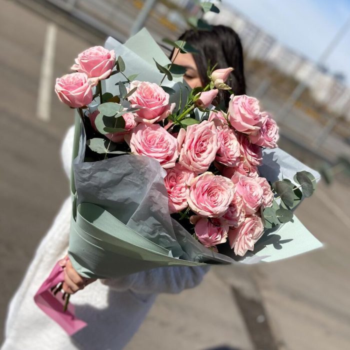 Букет с пионовидной розой, лизиантус и пион «Романтик»