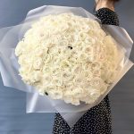 роза пионовидная плая бланка – 99 шт.матовая прозрачная корейская пленка – 4 шт.Лента атласная – 2 шт.