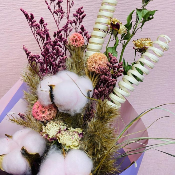Букет из сухо цветов с хлопком