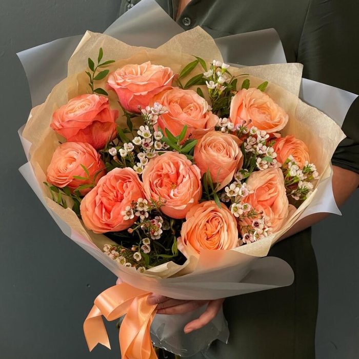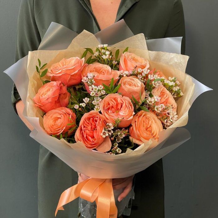Букет из ярких роз “Апельсиновый фреш”