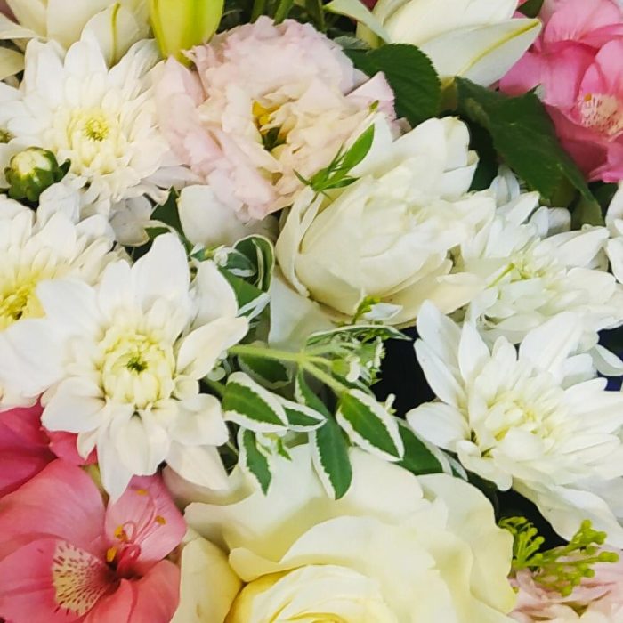Категории: Альстромерии, Лизиантусы, Розы, Хризантемы