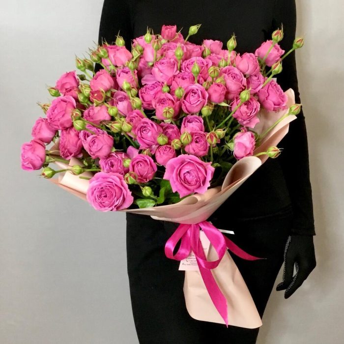 Лента атласная – 1 шт.пленка перламутровая – 2 шт.пионовидная кустовая роза баблз – 15 шт.