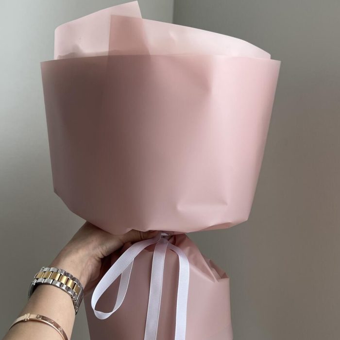 роза пионовидная плая бланка – 5 шт.пленка матовая полупрозрачная – 1 шт.тишью белая хрустящая – 1 шт.роза питновидная pink o’hara – 6 шт.