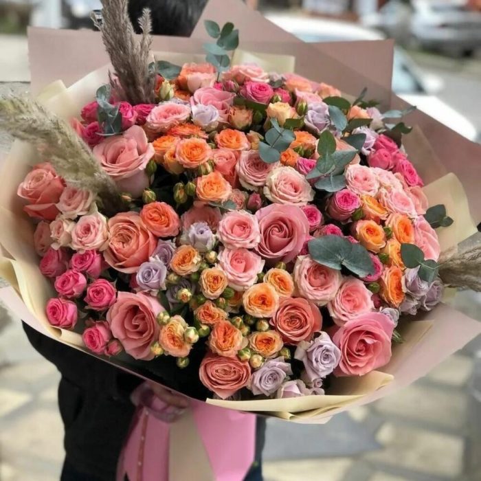 Кустовые розы, Пионовидные розы, Розы, Сухоцвет, Тюльпаны