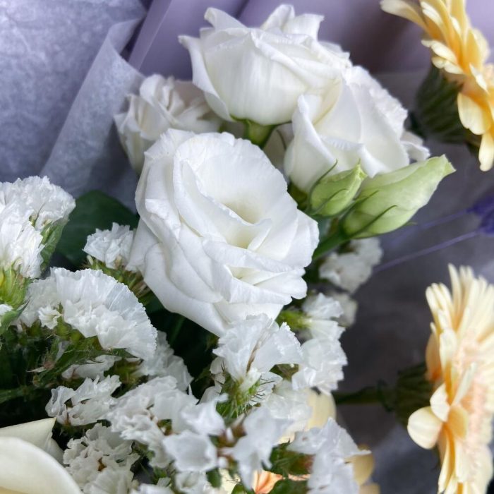 Категорий: Герберы, Ирисы, Лизиантусы, Розы, Сухоцвет